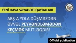 Bu barədə ABŞ-ın Azərbaycandakı Səfirliyi ABŞ-ın yeni hava səyahəti qaydalarına əsaslanaraq məlumat yayıb.