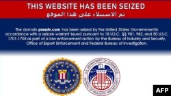 Veb saytlarda "ələ keçirmə qərarı ilə" ələ keçirilməsi haqqında məlumat və Federal Təhqiqatlar Bürosu ilə Ticarət Nazirliyinin Sənaye və Təhlükəsizlik Bürosunun möhürləri yerləşdirlib.