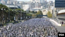 Bakıda əsgərlər müharibədə həlak olan yoldaşlarının fotoşəkillərini daşıyaraq şəhərin mərkəzində fəxri keçid həyata keçirib.