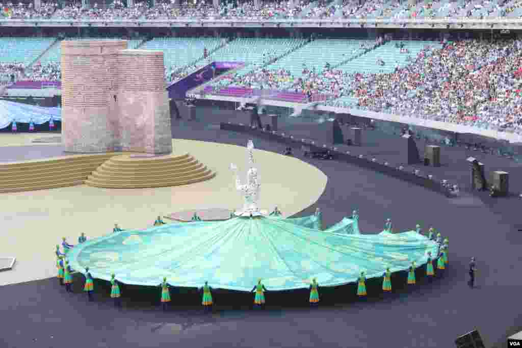 Azərbaycan musiqisi, rəqsləri ifa edilib. Qədim memarlıq nümunələri və abidələri ekranda nümayiş etdirilib. Bu ifalarda 500-dən çox rəqqas və müasir texnologiyaların son nailiyyətləri olna yeni səhnə effektləri fonunda iştirak edib.