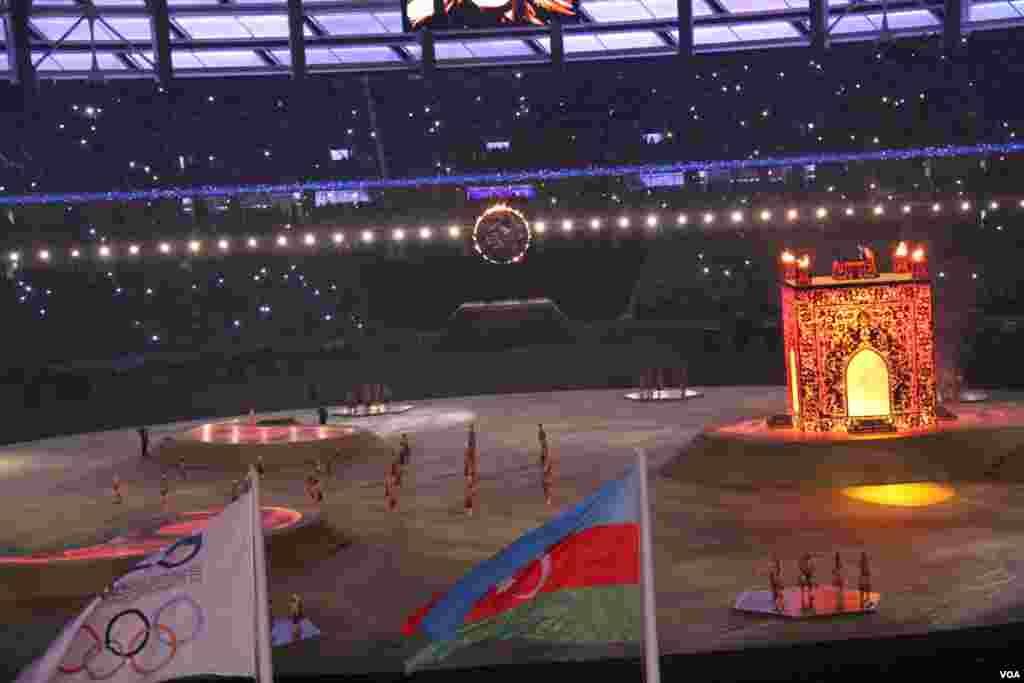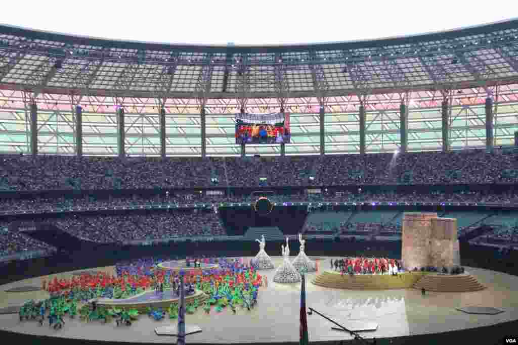 Azərbaycan musiqisi, rəqsləri ifa edilib. Qədim memarlıq nümunələri və abidələri ekranda nümayiş etdirilib. Bu ifalarda 500-dən çox rəqqas və müasir texnologiyaların son nailiyyətləri olna yeni səhnə effektləri fonunda iştirak edib.