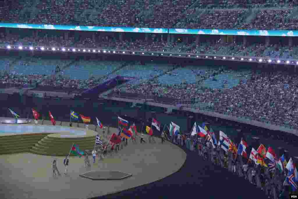 Yarışlarda iştirak edən 50 ölkənin idmançıları tribunanın önündən keçib.