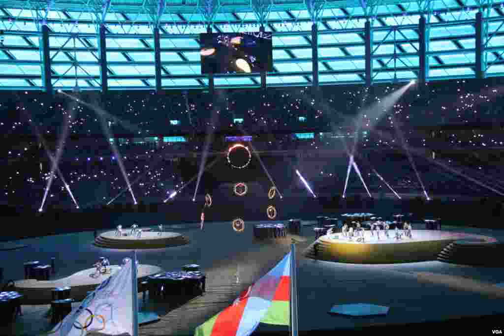 Azərbaycan musiqisi, rəqsləri ifa edilib. Qədim memarlıq nümunələri və abidələri ekranda nümayiş etdirilib. Bu ifalarda 500-dən çox rəqqas və müasir texnologiyaların son nailiyyətləri olna yeni səhnə effektləri fonunda iştirak edib.