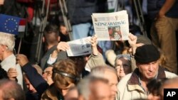 Macarıstanın ən çox satılan müxalifət qəzetinin gözlənilmədən bağlanması bazar günü minlərlə etirazçının paytaxt Budapeşt kücələrinə çıxmasına səbəb olub.