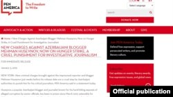 "Həbsdə olan bloger Mehman Hüseynova qarşı irəli sürülmüş yeni cinayət ittihamları Azərbaycan hakimiyyətinin onu tənqidi jurnalistikaya görə cəzalandırmaq məqsədilə atdığı amansız və əsassız addımdır." Bu barədə PEN America-nın bəyanatında deyilir.