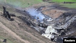 Hadisə şahidləri təyyarənin yerə düşərkən havada parçalara ayrıldığını deyir.
