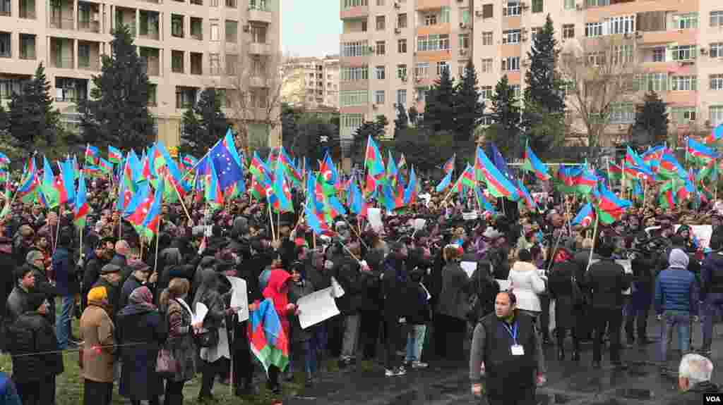 Milli Şura və Müsavat Partiyası birgə aksiyada “Talana son!”, “Monarxiyaya son!” və "Siyasi məhbuslara azadlıq"” kimi şüarlar səsləndirib. Miotinq iştirakçıları prezident seçkilərinin nəticələrinin ləğv edilməsini tələb edib.