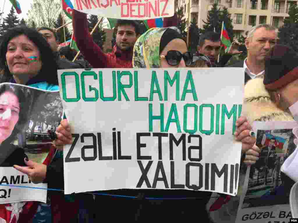 Milli Şura və Müsavat Partiyası birgə aksiyada “Talana son!”, “Monarxiyaya son!” və "Siyasi məhbuslara azadlıq"” kimi şüarlar səsləndirib. Miotinq iştirakçıları prezident seçkilərinin nəticələrinin ləğv edilməsini tələb edib.