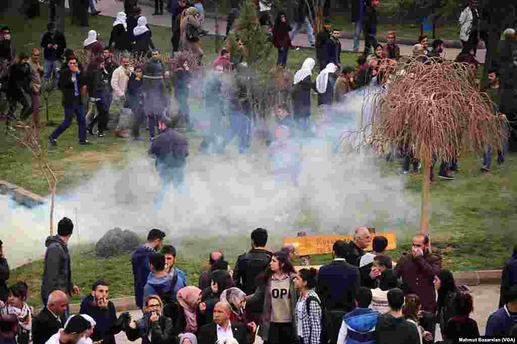 Diyarbəkirdə Demokratik Toplum Konqresinin çağırışı ilə mətbuat konfransından sonra Surda ipolis nümayişi dağıtmağa cəhd edib. Nəzarət altına alınanlar var