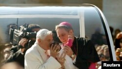 Roma Papasını Müqəddəs Pyotr meydanına gətirən avtomobil meydanı dolaşan zaman o, insanları salamlayıb və kütlə içərisindən qucağına verilən körpəyə dua oxuyub.